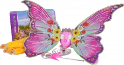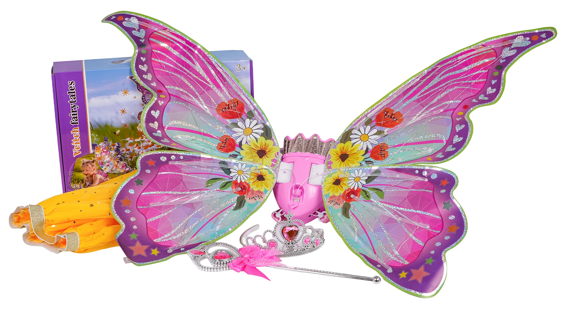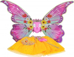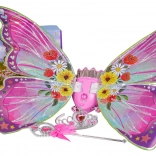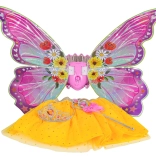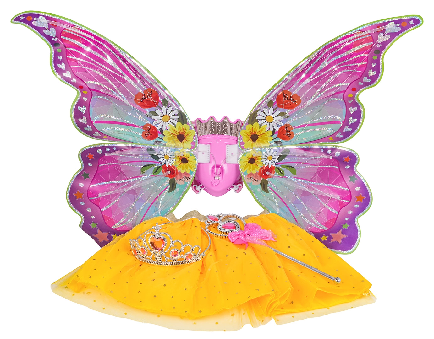 - aripi de fluture cu lumină și sunet, fustă galbenă, baghetă magică, coroană
