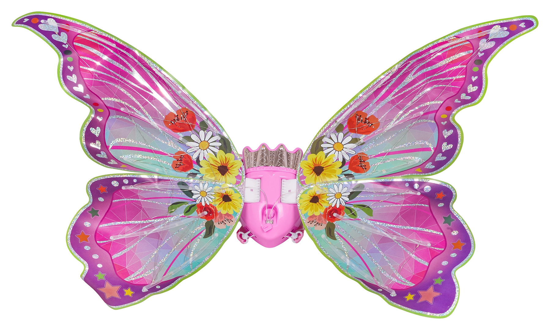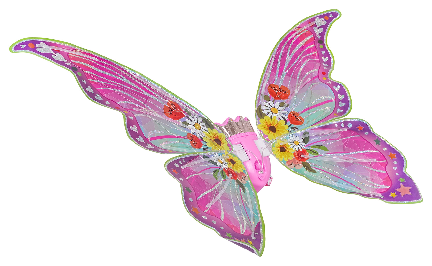 Aripi colorate cu LED-uri și fluturare, oferă moduri cu lumină, clipire și muzică – pentru un efect magic maxim la fiecare joacă.