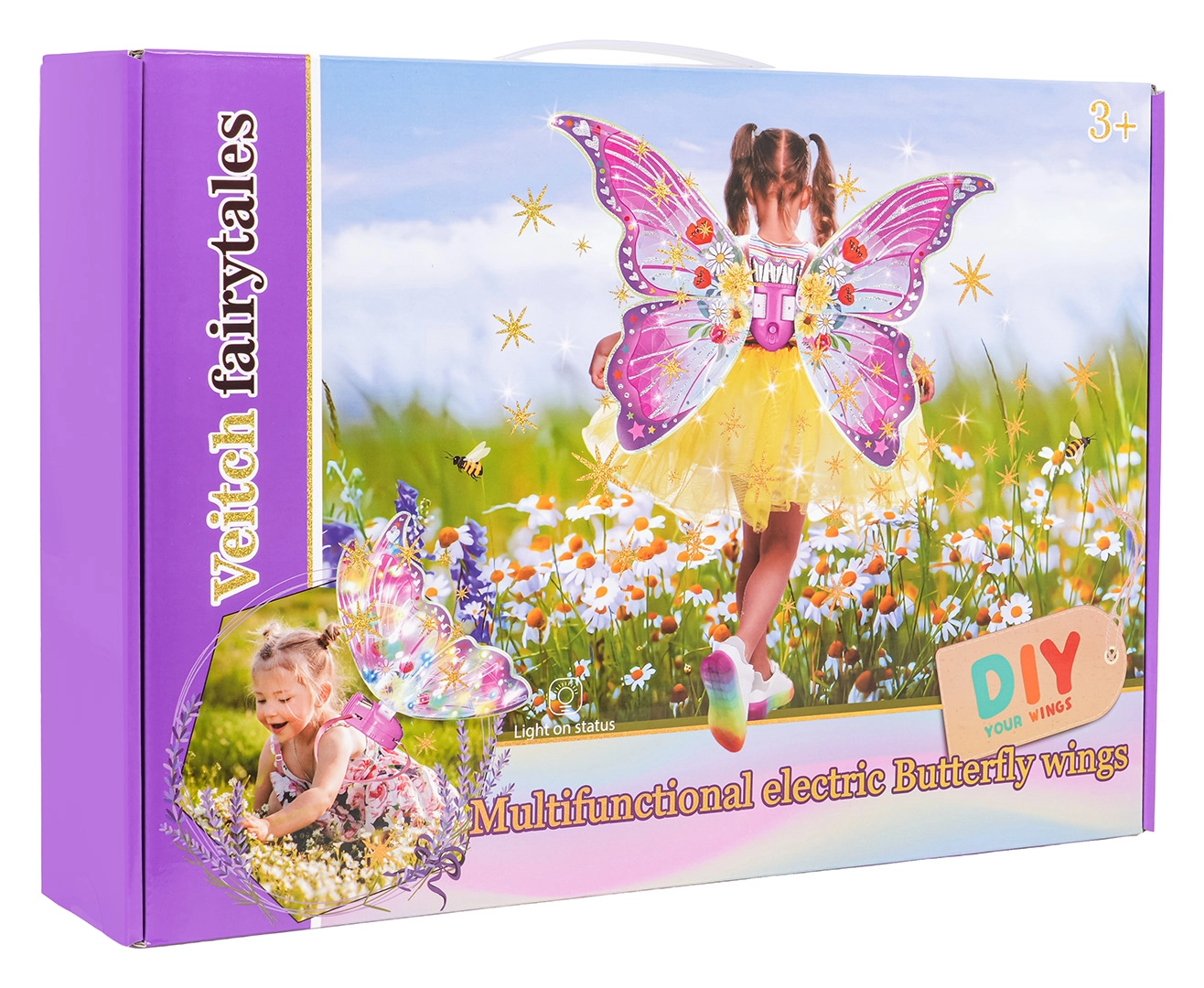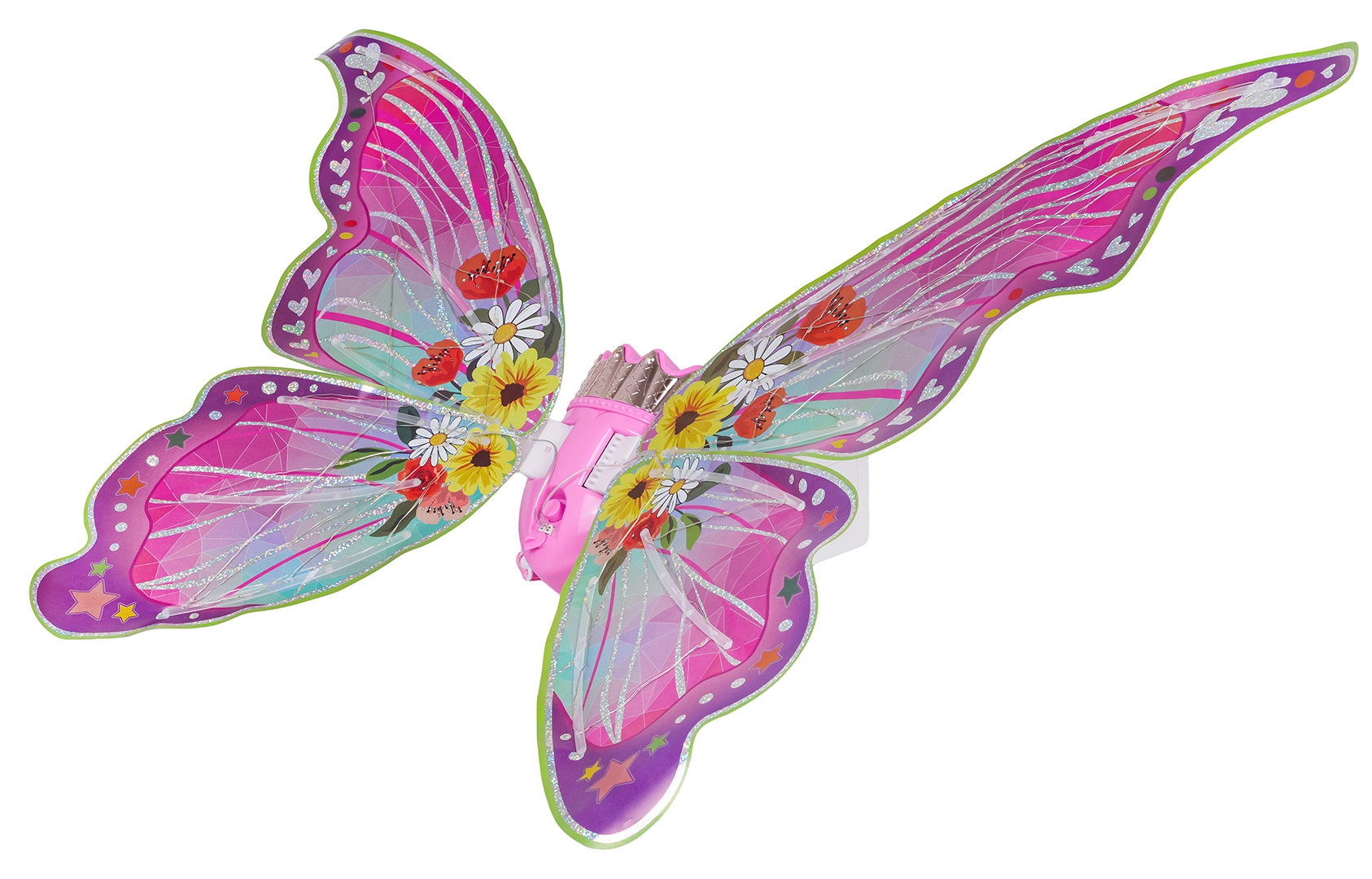 Aripile de fluture oferă mai multe moduri: muzică + fluturare + efecte luminoase, fluturare + lumini, fluturare + lumini intermitente și fluturare simplă. Bretelele ajustabile asigură prindere confortabilă, iar construcția ușoară și LED-urile multicolore creează o atmosferă magică în orice joc.