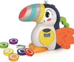 Faceți cunoștință cu Adrian – un tucan interactiv adorabil, care îi învață pe cei mici primele cuvinte, culorile și fructele. După introducerea unuia dintre cele șapte jetoane, tucanul recunoaște fructul, îl denumește, iar ciocul i se aprinde în culoarea corespunzătoare. Cântecele și rimele vesele îmbogățesc vocabularul, iar modul trilingv cehă/slovacă/maghiară dezvoltă abilitățile lingvistice. Jucăria dezvoltă, de asemenea, motricitatea fină și coordonarea mână–ochi.