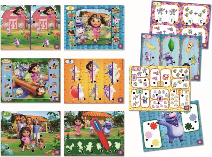 Joc interactiv cu 200 de quizuri DORA exploratoarea. Stilou cu lumină și sunet, dezvoltă logica și concentrarea. Baterii AAA incluse. Ideal pentru preșcolari.
