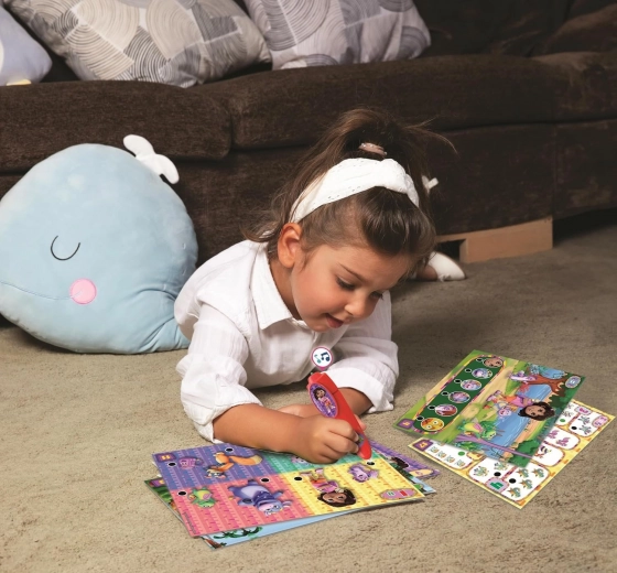 Setul de jocuri cu 200 de quizuri este ideal pentru preșcolari care doresc să descopere lumea într-un mod distractiv. Stiloul interactiv oferă feedback imediat – la răspunsul corect se aprinde și emite un sunet, motivând copiii să continue și să învețe pe cont propriu.