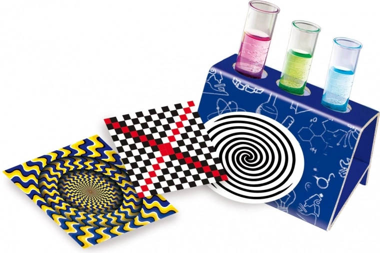 Setul include carduri cu iluzii optice și experimente simple care le arată copiilor cum ochiul uman percepe lumina, culorile și modelele.