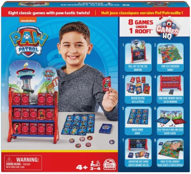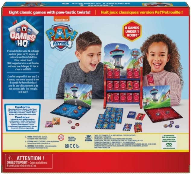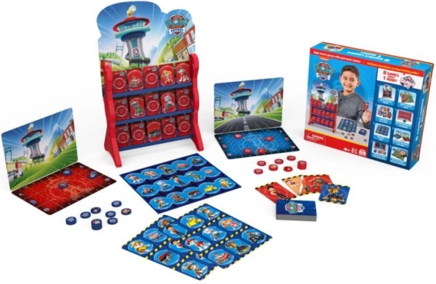 Bucură-te de distracție în familie cu un set de opt jocuri clasice în stilul 3D al centralei PATRULA CĂȚELUȘILOR. Găsești aici bingo, x și 0, dame și alte jocuri simple pentru 2–4 jucători de la 4 ani, care dezvoltă logica, concentrarea și munca în echipă.