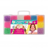 Descoperă lumea culorilor și a modelelor cu setul creativ pentru împletit elastice. Cu ajutorul războiului de țesut și al accesoriilor, vei crea cu ușurință brățări, inele sau mici decorațiuni originale pentru tine și prieteni. Organizatorul practic din plastic, cu capac, păstrează toate componentele la locul lor.