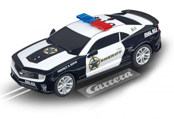 Modelul de mașină de poliție CHEVROLET Camaro Sheriff aduce pe pista dvs. atmosfera autentică a unei unități de intervenție. Datorită calității construcției și elementelor tehnice inteligente, vă veți bucura de o rulare lină, o menținere fermă pe traseu și efecte luminoase spectaculoase.