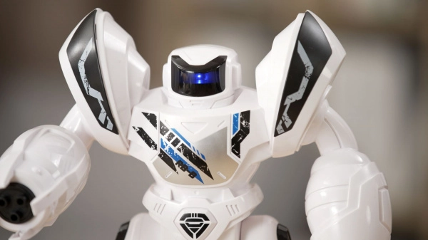 Robotul trage proiectile și acompaniază acțiunea cu față LED și efecte sonore pentru și mai multă distracție.