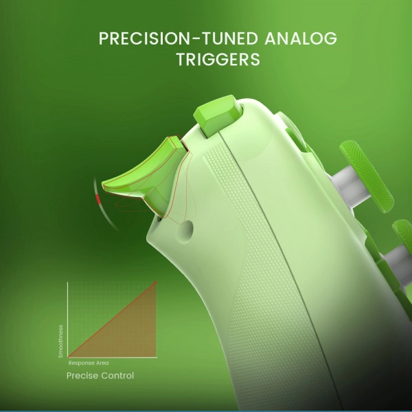 Controllerul este conceput pentru confort și performanță: Turbo 20 Hz cu butoane configurabile îți accelerează acțiunea, în timp ce butonul multifuncțional M facilitează ajustări rapide ale vibrațiilor, aranjamentului ABXY și zonelor moarte. Două motoare de vibrație în mânere sporesc realismul, iar controlul lin al triggerelor analogice îmbunătățește experiența în jocurile de curse și de acțiune.