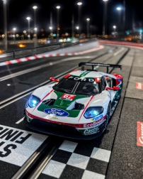 Modelul de curse Ford GT pentru pistele CARRERA Digital 124 la scara 1:24 oferă performanțe de top și o experiență realistă. Dispune de faruri și stopuri funcționale, perii de contact duble pentru preluare fiabilă a curentului și magnet pentru aderență mai bună în curbe. Pachetul include perii de rezervă, ghidaj și alte accesorii.