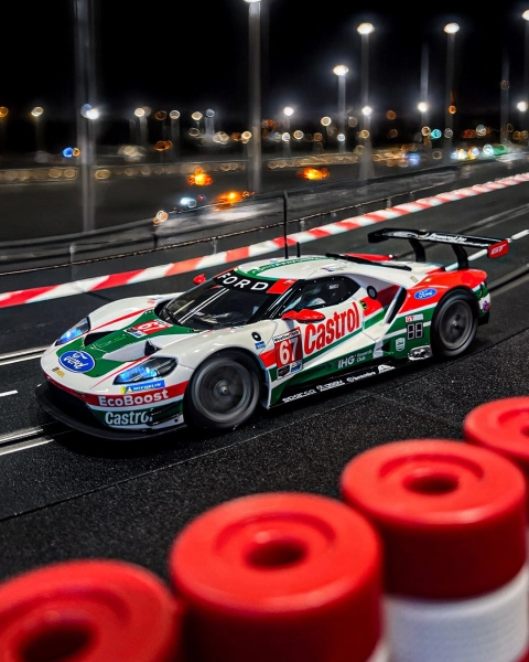 Bucurați-vă de o rulare lină și dinamică cu modelul Ford GT Race Car nr. 67 pentru pistele CARRERA Digital 124. Execuția precisă și componentele de calitate garantează stabilitate, performanță și durabilitate. Datorită iluminării funcționale și detaliilor realiste, modelul impresionează atât în timpul curselor, cât și la expunere.