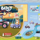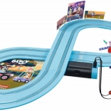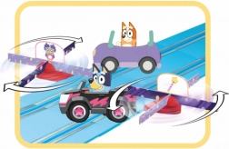 Bucurați-vă de primele experiențe de curse cu pista auto Carrera First cu tematică BLUEY și BINGO. Traseul compact cu lungimea de 2,4 m oferă linii drepte, curbe și amuzante elice, două mașinuțe, controlere de viteză și asamblare ușoară. Ideală pentru copii de la 3 ani, funcționează cu baterii 4× C.