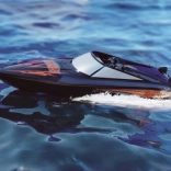 Controlul modern pe 2,4 GHz minimizează interferențele, permite rularea simultană a mai multor bărci și avertizează prin bip la tensiune scăzută a bateriei.