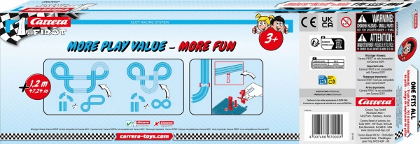 Completează pista ta CARRERA FIRST cu o nouă dimensiune a distracției folosind setul de extindere First Track Pack. Setul oferă instalare ușoară și mai multă varietate a traseelor. Conține linie dreaptă, îngustare a pistei și viraje cu suporți pentru o cursă mai dinamică și timp de joacă mai îndelungat.