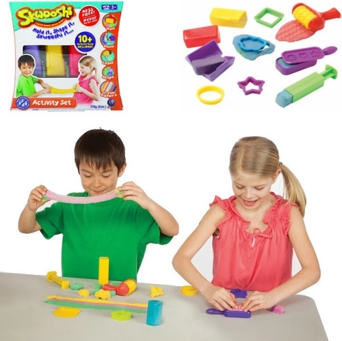 Skwooshi set creativ pentru copii: material fără gluten, hipoalergenic, care nu murdărește și nu se usucă. 12 elemente, culori diverse, sprijină creativitatea de la 3 ani.