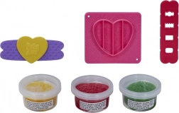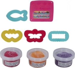 - 3 borcănașe de plastilină, 5 accesorii (forme și instrumente), mașină pentru prepararea pastelor