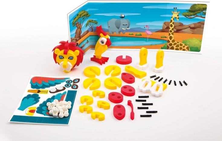 Cu acest set creativ, copiii pot construi jucăuș animăluțe adorabile din piese moi din spumă. Piesele se prind ușor, sunt plăcute la strâns și sigure pentru mânuțele mici. Jocul sprijină dezvoltarea motricității fine, a coordonării mână–ochi și a fanteziei.