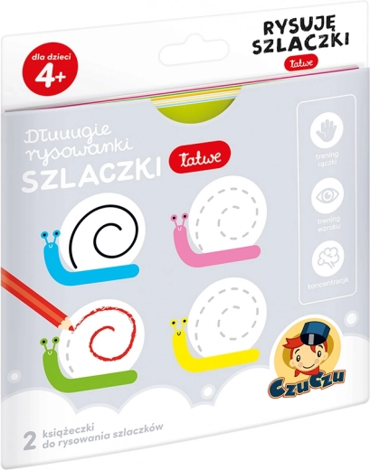 Set creativ pentru copii de la 4 ani, cu două cărți pliante lungi, pline de ilustrații vesele și modele simple. Susține motricitatea fină, concentrarea și pregătirea pentru scris și, datorită formatului compact, este ideal acasă și în călătorii.