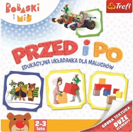 Descoperă puzzle-ul inteligent „Înainte și după” inspirat de personajele din serialul îndrăgit BOBASKI I MIŚ. Copiii asociază imagini colorate în perechi narative, dezvoltându-și gândirea logică, abilitățile de povestire și concentrarea. Piesele mari și rezistente sunt ideale pentru mâinile mici și asigură joacă în siguranță începând de la 2 ani.