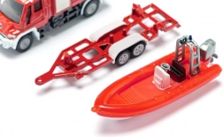 Îmbogățește-ți colecția cu modelul realist SIKU Super – autospecială UNIMOG cu remorcă și barcă specială cu scară. Combinația de metal și plastic oferă o rezistență ridicată, în timp ce anvelopele din cauciuc asigură o deplasare lină și silențioasă pe diverse suprafețe. O alegere excelentă pentru pasionații de tehnică, tematică de pompieri și micii eroi.