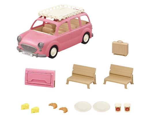 Descoperiți farmecul excursiilor împreună cu vanul familial pentru picnic SYLVANIAN FAMILIES – un vehicul spațios, roz, pentru până la 8 figurine. Oferă scaune spate rabatabile, capac de portbagaj detașabil folosit ca masă, un suport de plafon cu coș de picnic practic și chiar suprafață de joc pentru șotron. Perfect pentru joacă realistă și picnicuri de familie în natură.