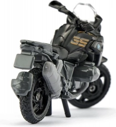 Reproducere fidelă a iconicului BMW R 1250 GS LCI, cu elemente precise ale caroseriei, cadrului și șasiului, într-o combinație elegantă de negru și argintiu.