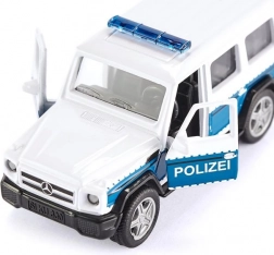 Model detaliat al vehiculului de poliție Mercedes-AMG G65 de la Siku la scară 1:50 îi va încânta atât pe colecționari, cât și pe copii. Oferă piese metalice și din plastic pentru durabilitate ridicată, uși față și spate deschise, roți detașabile și colorație alb-albastră autentică a poliției federale germane. Include dispozitiv de remorcare pentru conectarea remorcilor Siku.