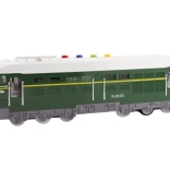 Această locomotivă verde, realizată cu atenție la detalii, va încânta orice mic iubitor de trenuri. Este fabricată din plastic rezistent, oferă efecte sonore și luminoase realiste și, datorită mecanismului cu inerție, pornește cu ușurință. Ideală ca cadou pentru copii de la 3 ani.