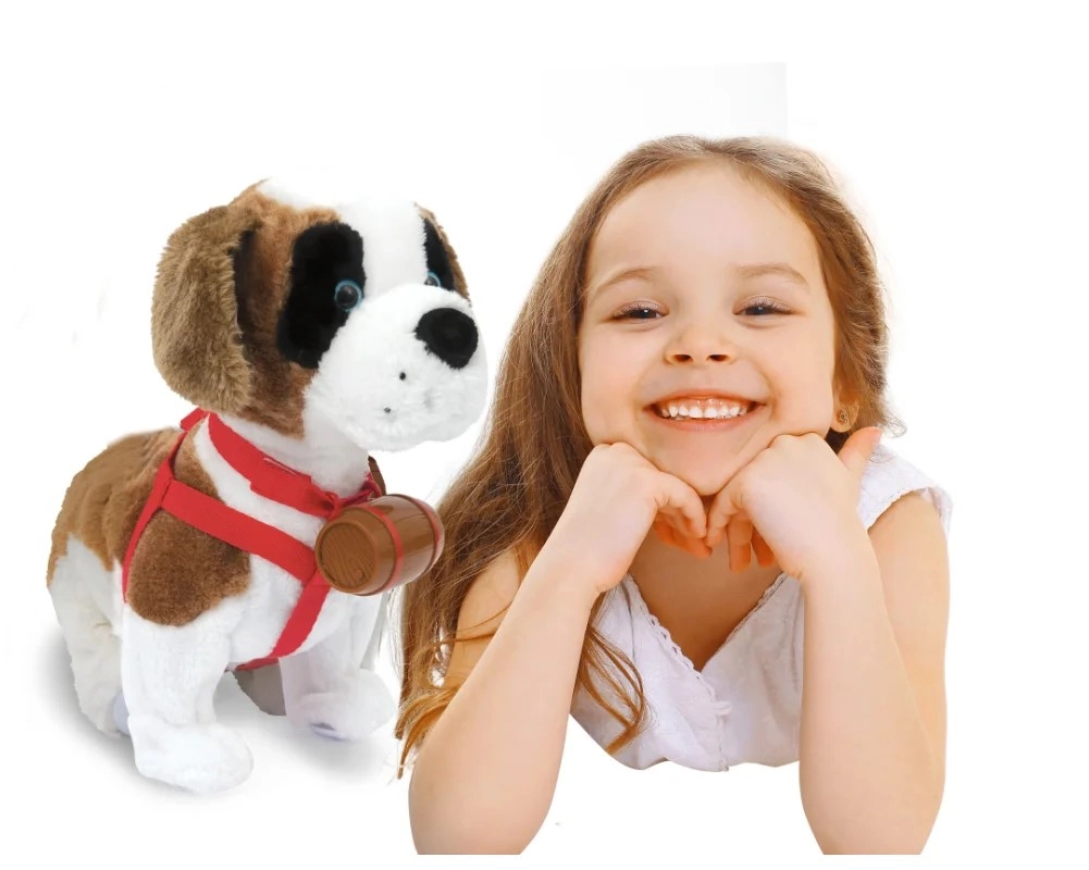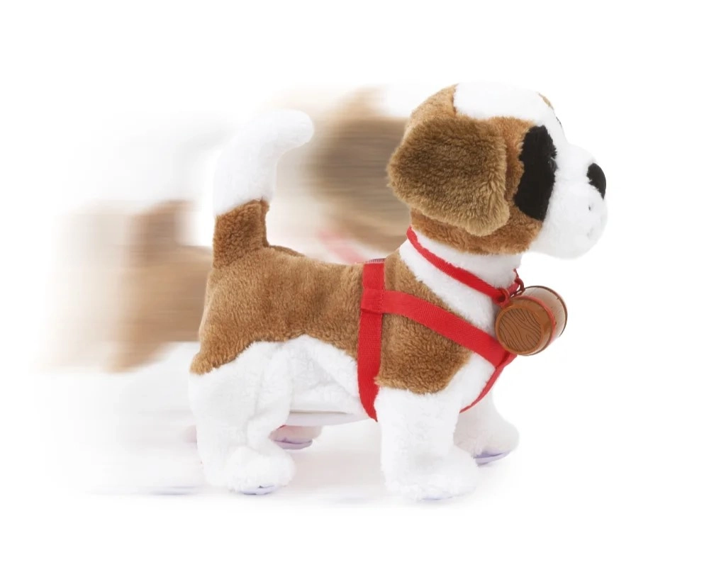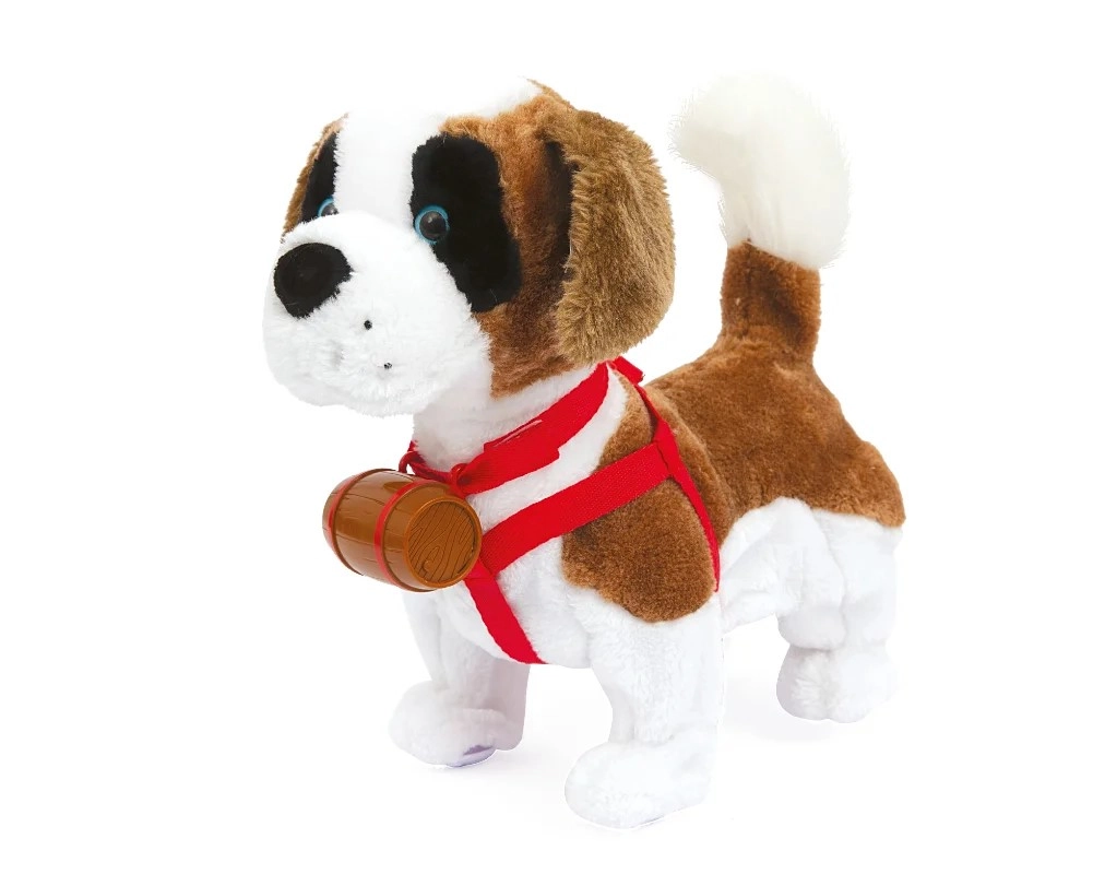 Samby este un Saint Bernard din pluș, foarte moale, care imită fidel comportamentul unui câine adevărat. După ce este mângâiat pe cap, latră fericit și dă din coadă, iar după ce îi pui hamul și îl mângâi pe laterale, reacționează entuziast. Îl poți porni la mers prin bătăi din palme – totul fără control complicat.