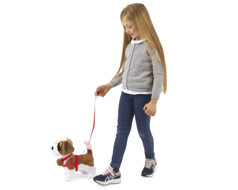 Cățelul interactiv este ideal pentru copii de la 3 ani. Dezvoltă empatia, grija față de animale și imaginația în jocurile de plimbare și dresaj. În pachet se află lesă, ham și butoiașul iconic pe guler, astfel încât joaca poate începe imediat după introducerea bateriilor.