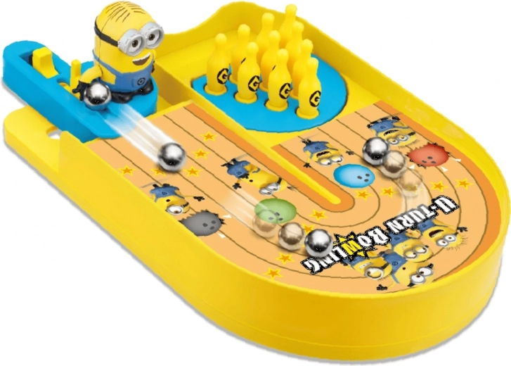 - 1 tablă de joc (aprox. 19 × 13 cm), 1 figurină Minion (aprox. 3 cm), 10 popice, 1 bilă de bowling, instrucțiuni (în engleză)