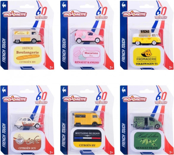 Seria include șase vehicule stilate inspirate de delicatese franceze: CITROËN HY (French Boulangerie – maro, Moutarde de Dijon – galben), RENAULT Kangoo (Macaron – roz), RENAULT Trafic (Huile d’olive – verde), VOLKSWAGEN T1 (Fromagerie – galben) și CITROËN 2CV (Café – bej). Fiecare model este la scara 1:64, cu o lungime de cca 7,5 cm și este livrat într-o cutie metalică elegantă de colecție.