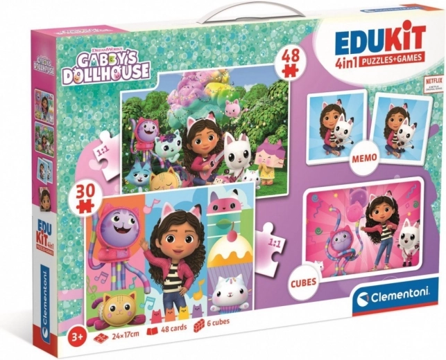 Setul educativ EduKit 4 în 1 Căsuța lui GABI aduce patru activități îndrăgite într-un singur pachet. Copiii se vor distra asamblând două puzzle-uri cu 30 și 48 de piese, exersând memoria cu cardurile memo și construind din 6 cuburi. Datorită tematicii inspirate din serialul popular, fiecare joc este distractiv, colorat și motivant.
