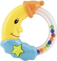 Zornăitoarea drăguță în formă de lună va bucura orice bebeluș încă de la naștere. Datorită construcției ușoare din plastic, se ține ușor în mână și, la mișcare, emite sunete plăcute care susțin percepția și liniștesc. Plastic ușor, sunet plăcut, două variante de culori, potrivită de la 0 luni.