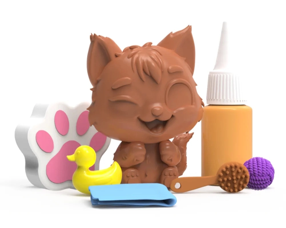 Setul amuzant cu pisoiul Karmelek transformă fiecare joacă într-o aventură. Copiii pot murdări pisoiul cu „noroișorul” inclus și apoi îl pot curăța cu burețelul sau periuța, susținând într-un mod jucăuș obiceiuri de curățenie și îngrijire. Materialele ușoare și accesoriile plăcute garantează că joaca va fi îndrăgită chiar și de cei mai mici.