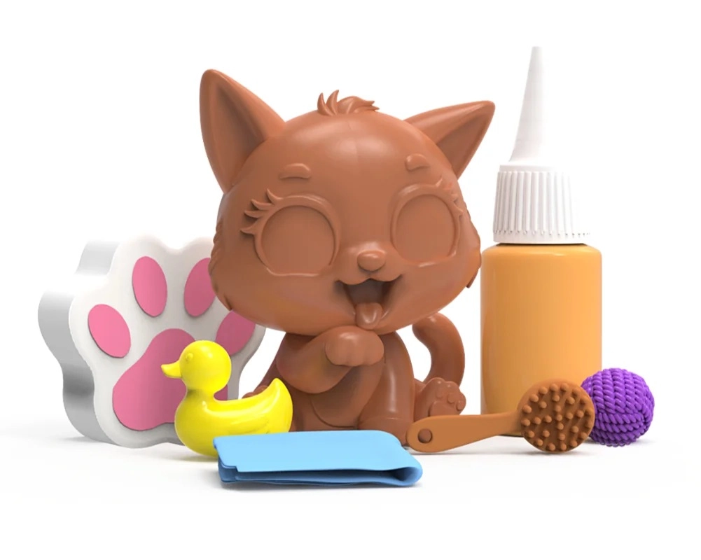 Accesorii precum rățușca, ghemul și prosopelul îmbogățesc joaca cu noi scenarii – de la băiță până la momente de alint. Colecția oferă în total nouă pisoiași diferiți, astfel încât copiii își pot extinde colecția și crea povești noi.