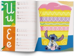 Caiet de activități amuzant pentru primele exerciții de scriere, cu personajul STITCH de la DISNEY. Copiii își exersează scrierea literelor pe linii, priza corectă a creionului și își dezvoltă răbdarea și precizia datorită sarcinilor jucăușe, autocolantelor și desenelor simple.