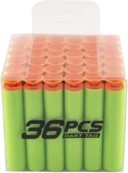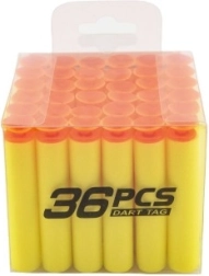 Completează-ți muniția pentru blasterele din spumă cu setul practic de 36 de săgeți de rezervă cu ventuză în cutie transparentă. Săgețile din spumă moale sunt sigure pentru joacă, compatibile cu pistoalele-jucărie obișnuite și, datorită cutiei portabile, ai rezervă mereu la îndemână.