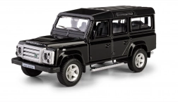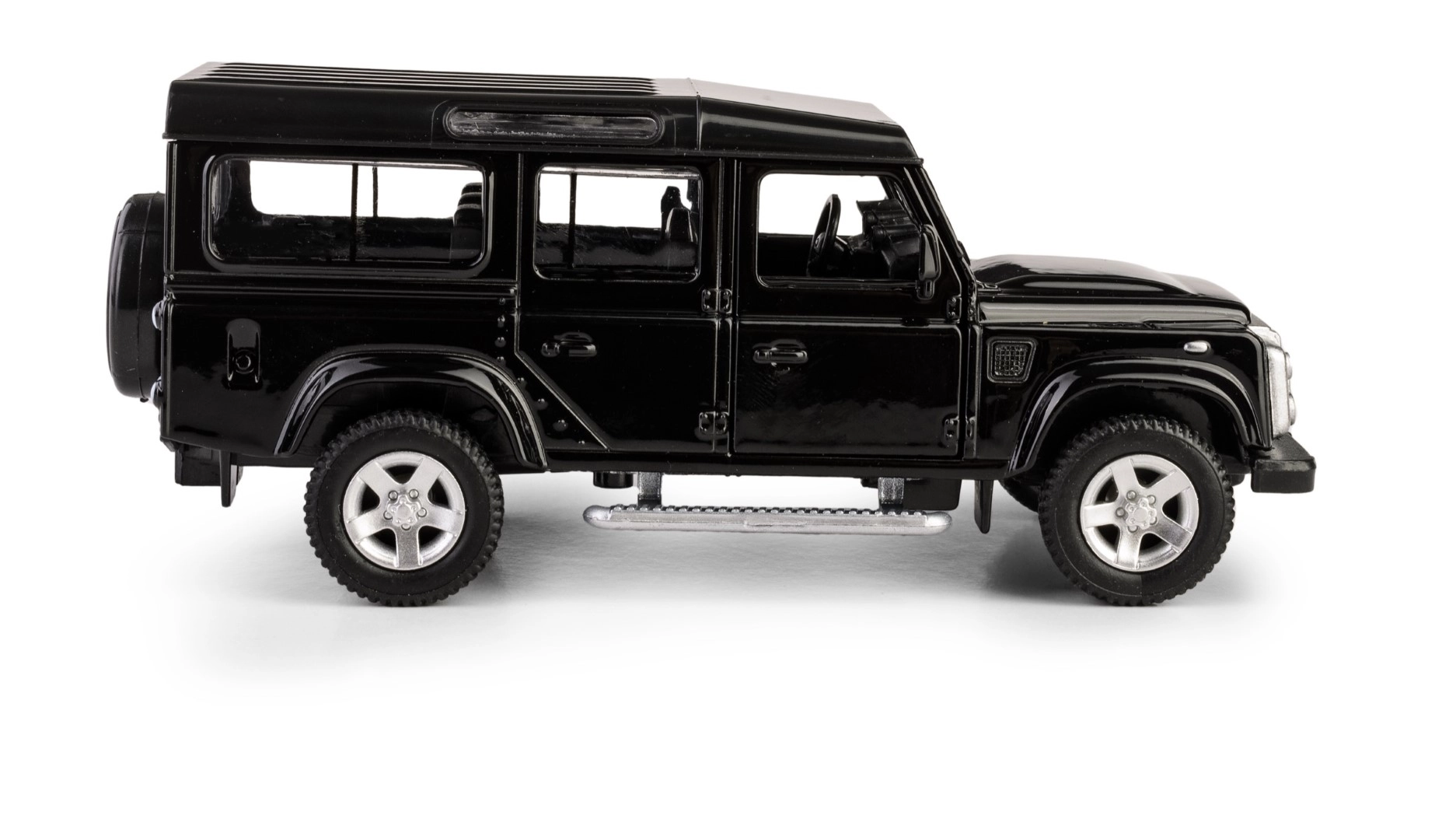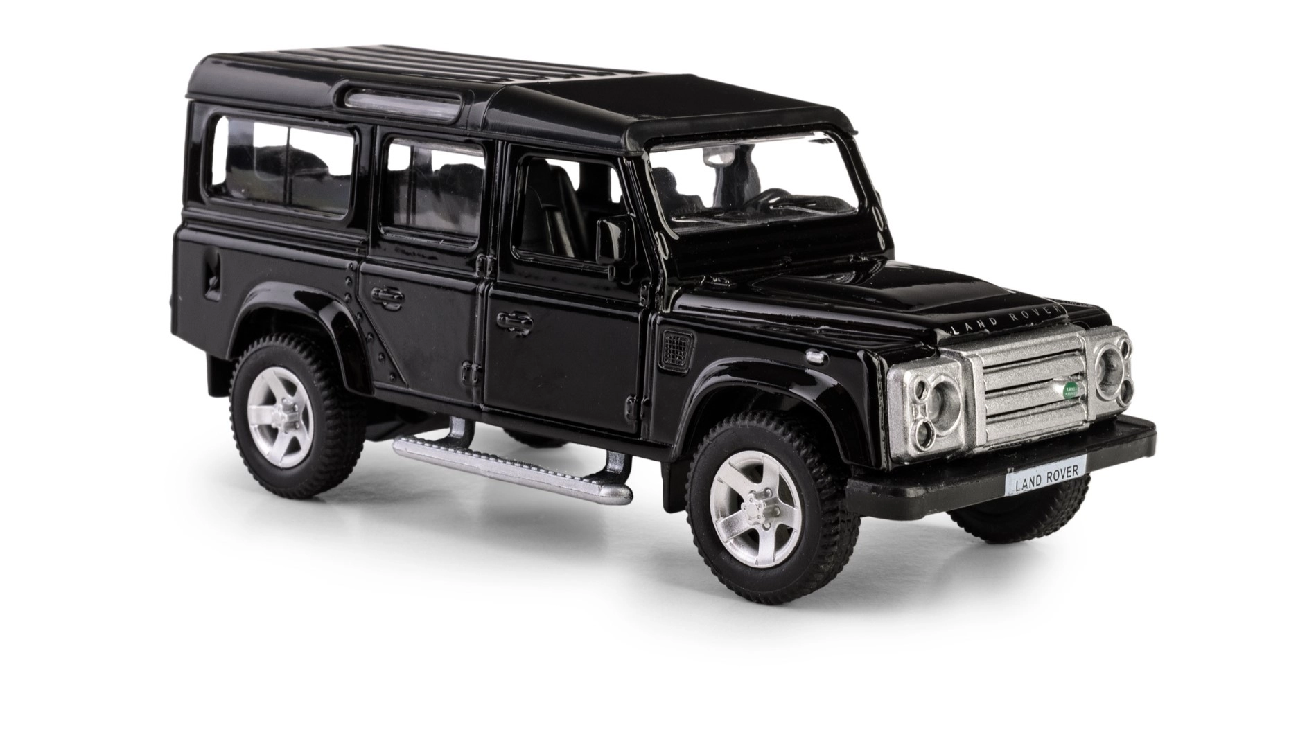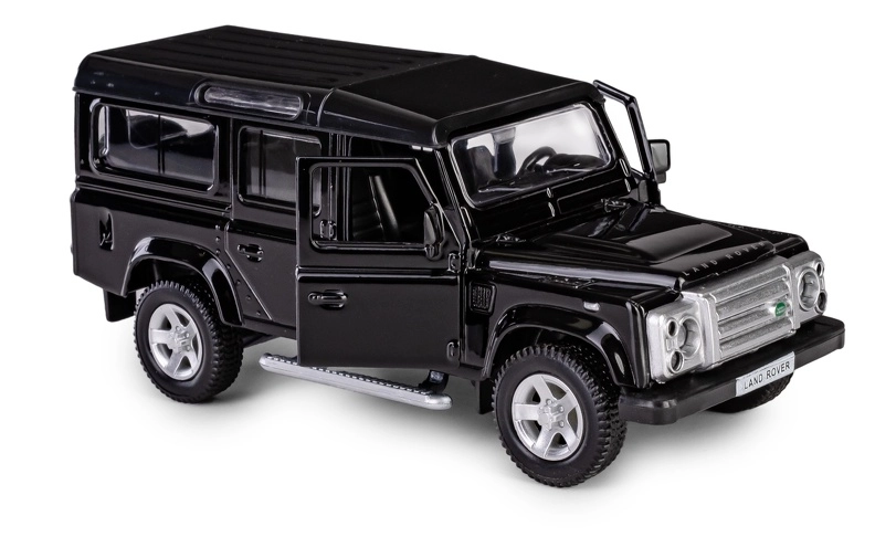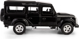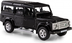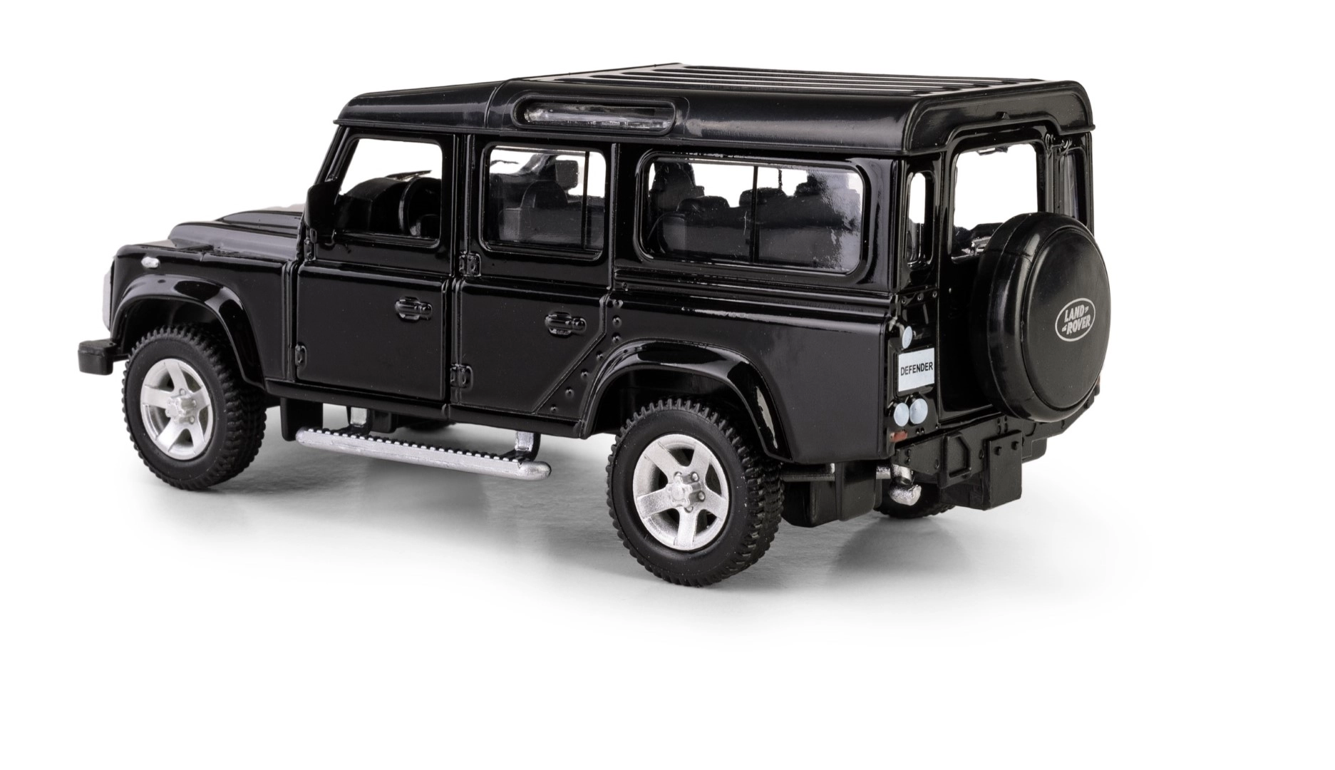 Descoperă replica detaliată a legendarului vehicul de teren LAND ROVER Defender 110, într-o elegantă culoare neagră. Acest model die-cast la scară 1:35 combină piese metalice cu detalii din plastic pentru a surprinde fidel liniile caracteristice, grila radiatorului, jantele și silueta robustă a originalului. Ușile față care se deschid îți permit să arunci o privire în interiorul atent realizat.
