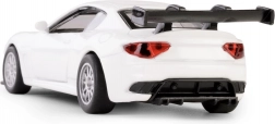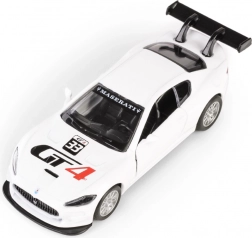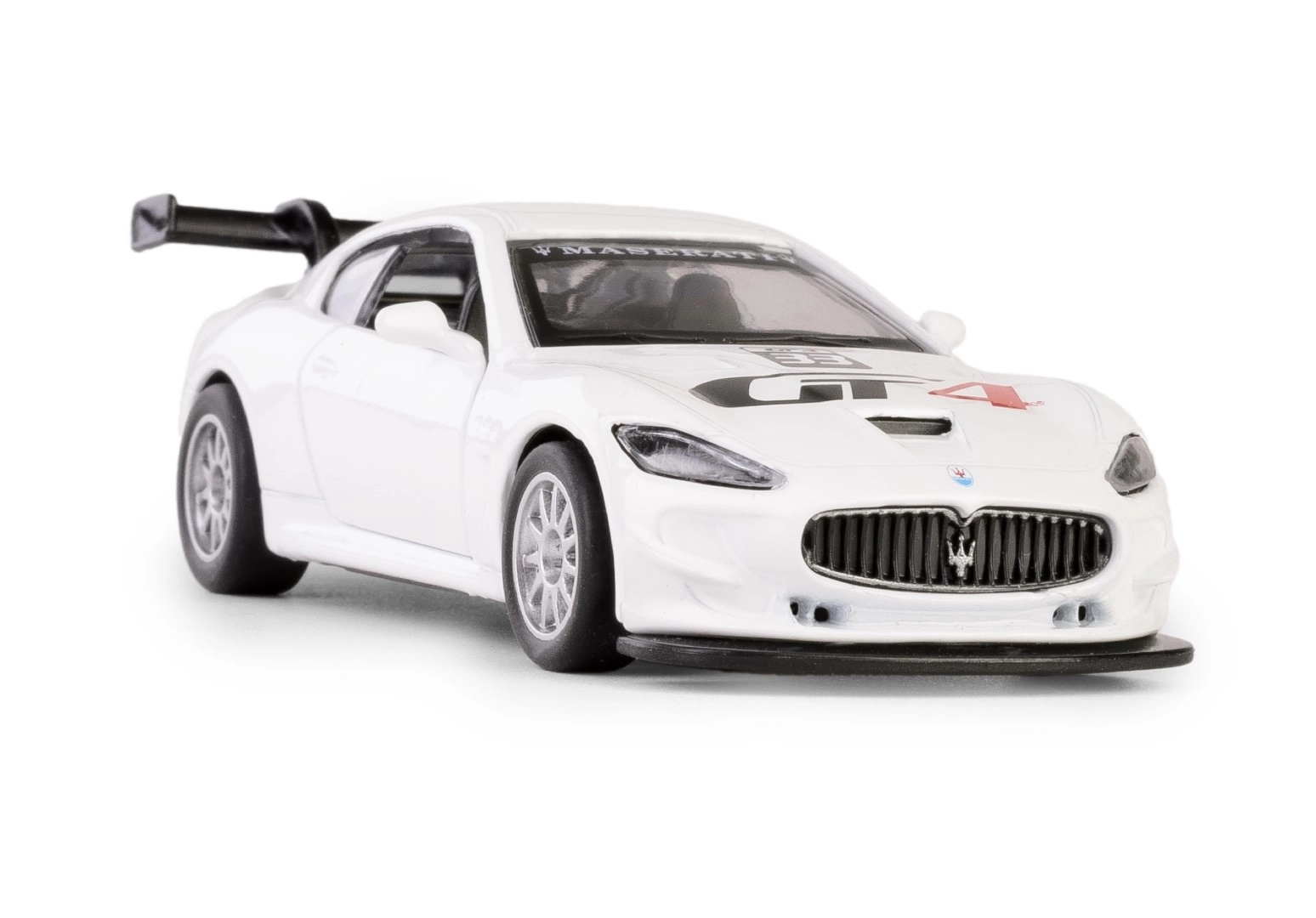 Bucurați-vă de miniatura realizată la standarde înalte MASERATI GranTurismo MC GT4, care redă fidel liniile dinamice ale mașinii de competiție. Caroseria metalică cu detalii din plastic are un aspect autentic, iar ușile deschise dezvăluie un interior precis. Datorită mecanismului pull‑back, este suficient să tragi modelul înapoi și pornește singur înainte.