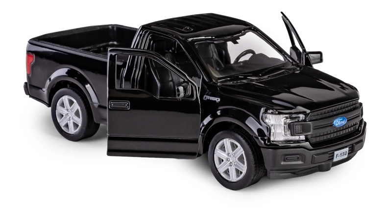 Modelul metalic stilat Ford F-150 2018 la scară 1:32 oferă execuție precisă, uși care se deschid și o funcție pull-back distractivă pentru deplasare înainte după tensionare. Datorită licenței oficiale, este o copie fidelă a vehiculului real și combină o caroserie metalică cu un interior din plastic detaliat – ideal pentru colecționari și pentru copii de la 3 ani.