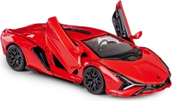 Datorită mecanismului pull-back, este suficient să tragi modelul înapoi și să-l eliberezi – mașina pornește singură înainte. Licența oficială a producătorului garantează o replică fidelă a automobilului sport Lamborghini Sian. Produsul este potrivit pentru copii de la 3 ani și îndeplinește standardele europene de siguranță pentru jucării.