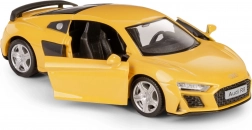 Modelul licențiat AUDI R8 2019 în culoare galben intens redă fidel liniile și proporțiile originale. Datorită ușilor care se deschid, puteți vedea interiorul lucrat în detaliu. Mecanismul cu recul asigură o deplasare sprintenă înainte după o scurtă tragere înapoi.