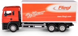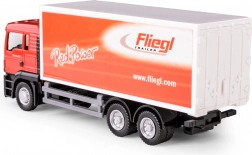 Cabina detaliată MAN TGS și remorca FLIEGL, cu inscripții autentice și mai multe axe, vor bucura copiii și colecționarii.