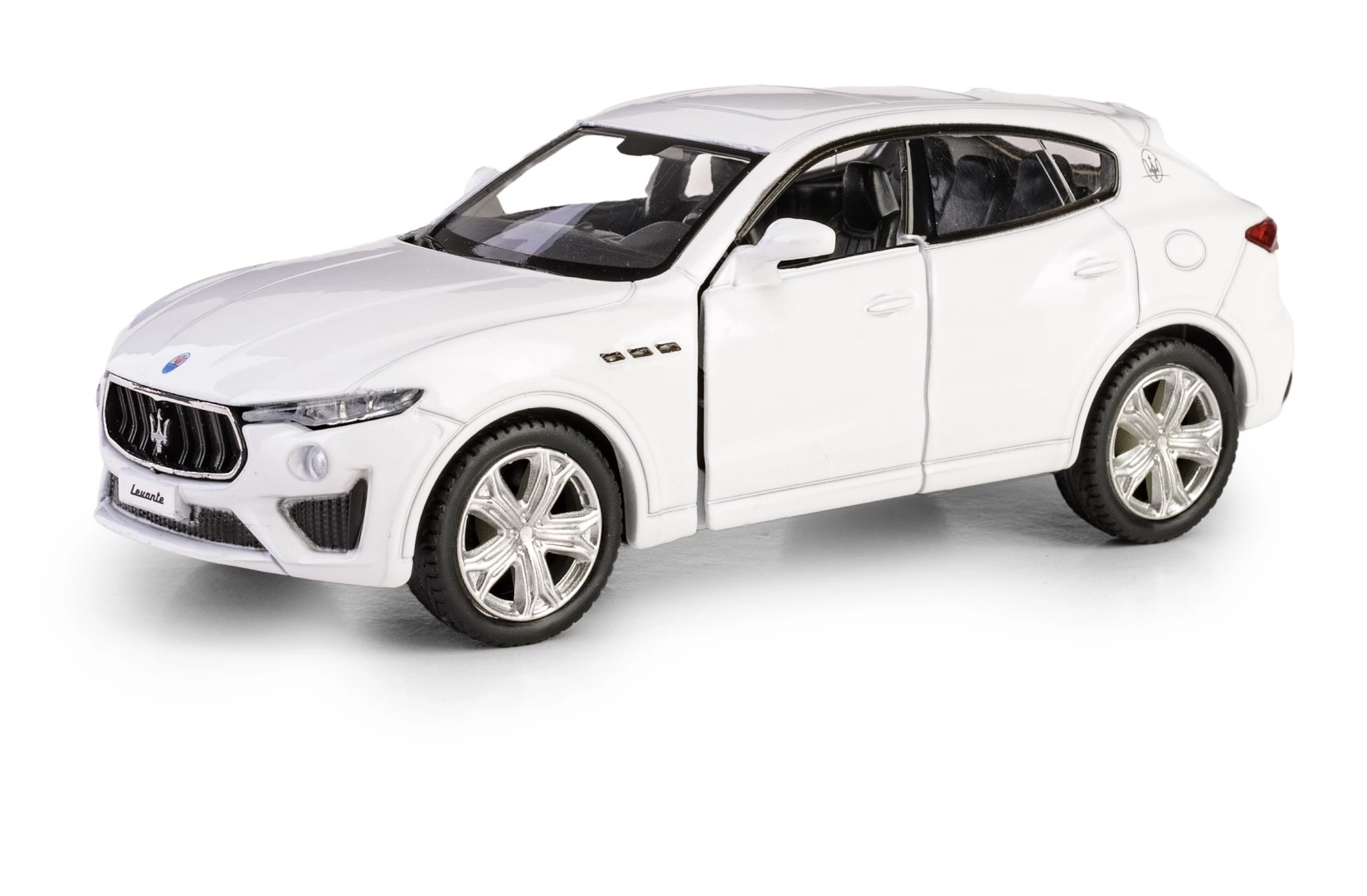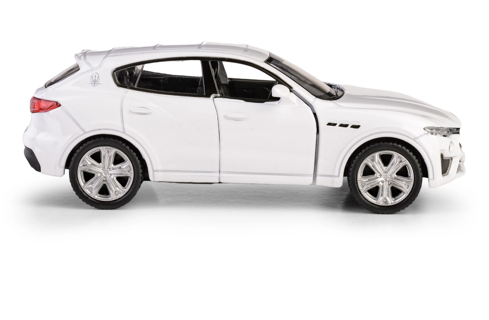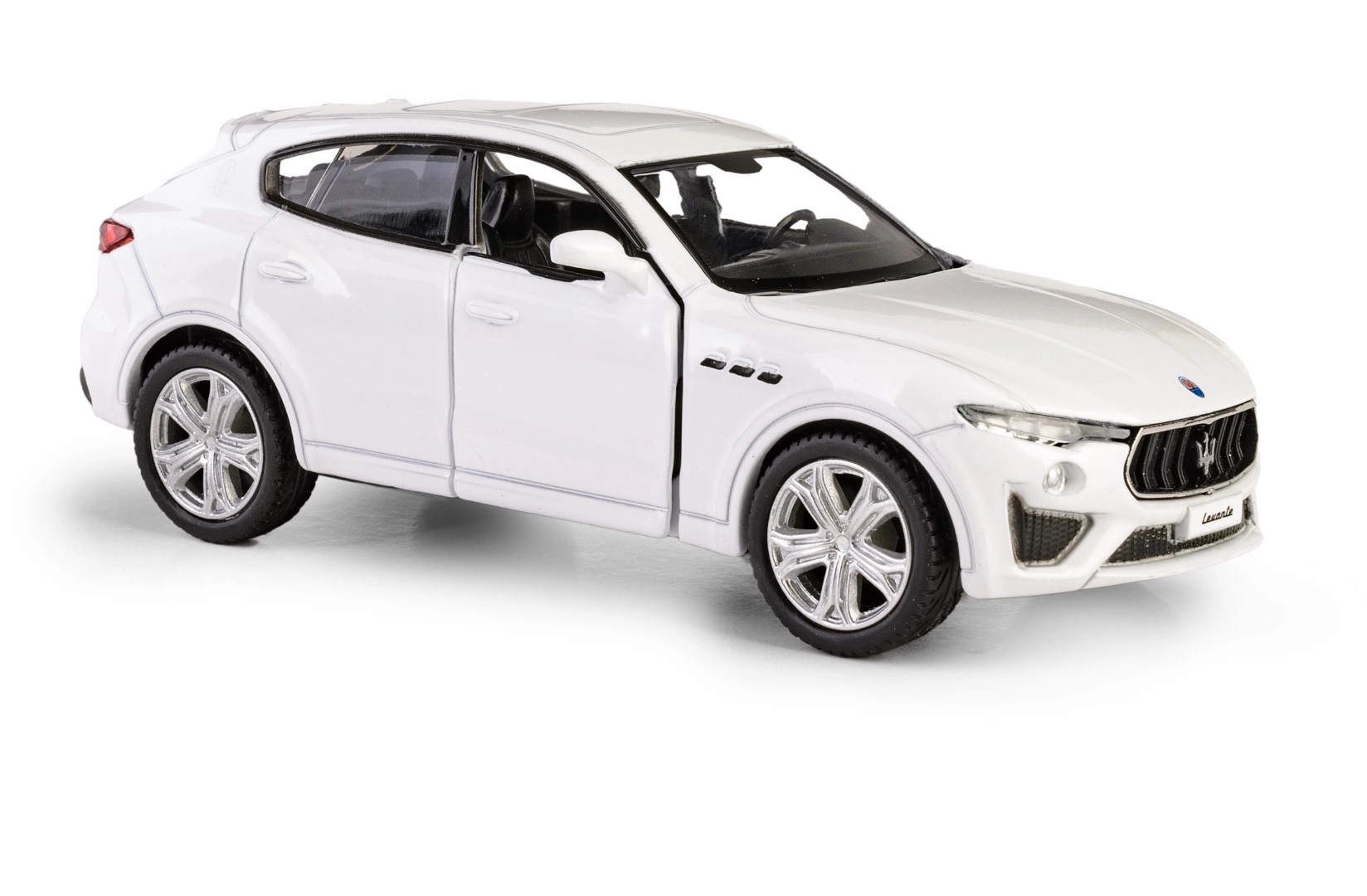 Bucură-te de realizarea de top a SUV-ului iconic cu modelul MASERATI Levante GTS în elegantul alb. Datorită scării 1:32 ies în evidență liniile curate, grila autentică și interiorul realist, în care poți arunca o privire prin ușile din față care se deschid. Construcția metalică asigură o rezistență mai mare și o durată de viață îndelungată chiar și la joacă frecventă.