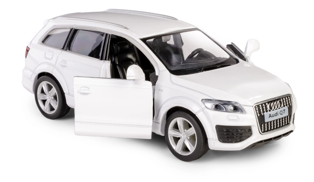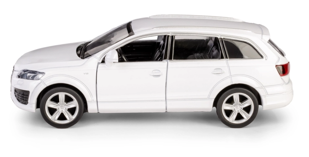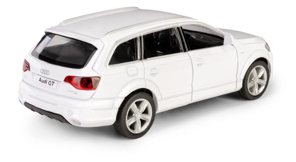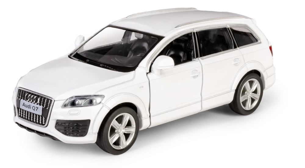 Model metalic detaliat al SUV-ului AUDI Q7 V12 la scara 1:40, care va încânta atât copiii, cât și colecționarii. Oferă uși care se deschid, mecanism de întoarcere (pull-back) pentru deplasare înainte și un interior realizat cu grijă. Modelul este din materiale de calitate, are licență oficială și respectă standardele europene de siguranță pentru copii de la 3 ani.