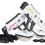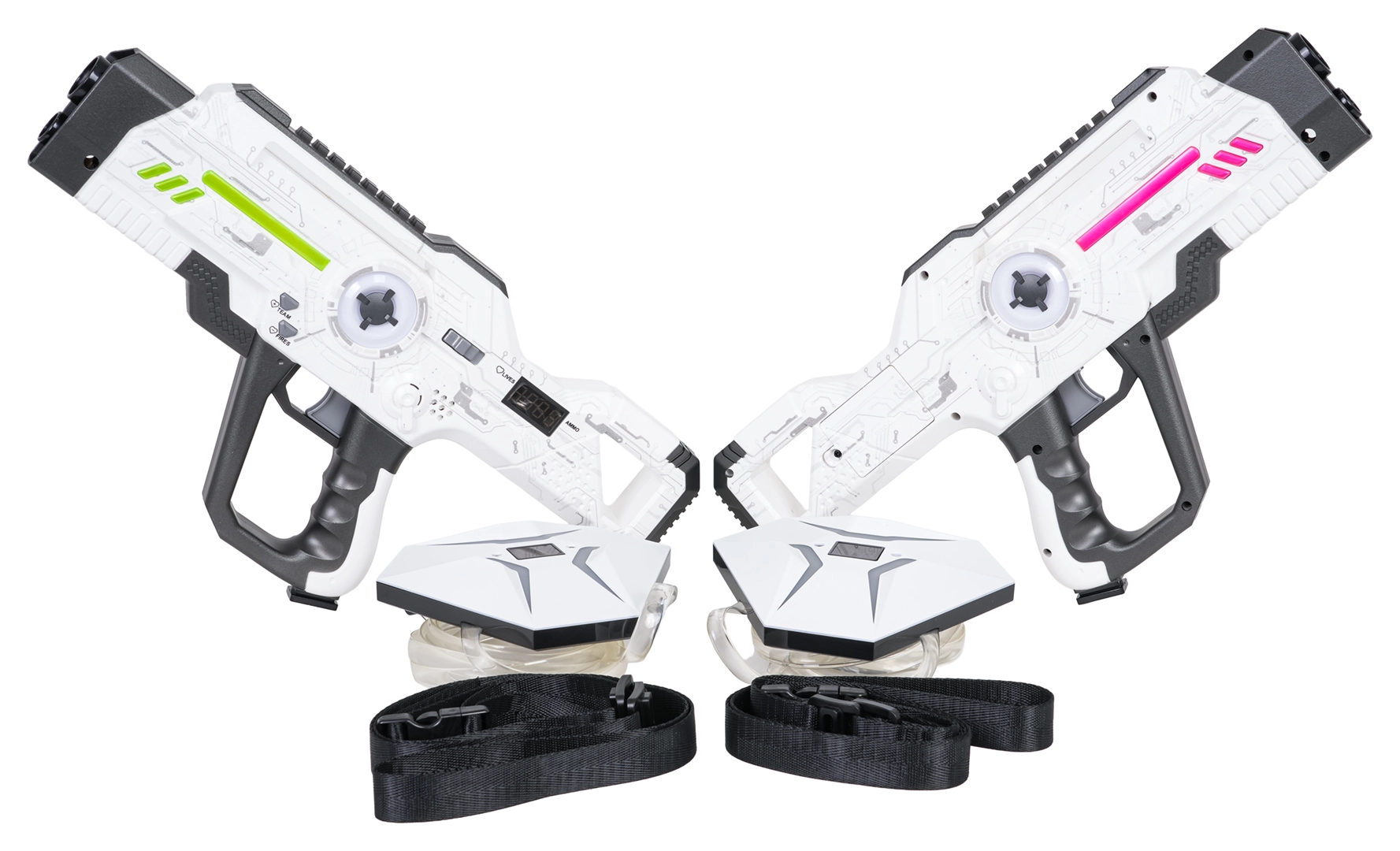 Acest set complet de laser tag aduce distracție dinamică pentru toată familia. Două blastere laser și două veste luminoase cu bretele ajustabile permit pregătirea rapidă a jocului și o competiție corectă. Datorită afișajelor LED de pe pistoale și veste, vedeți constant viețile și gloanțele rămase și setați dificultatea înainte de start: vieți 1–99 și muniție 1–12.