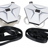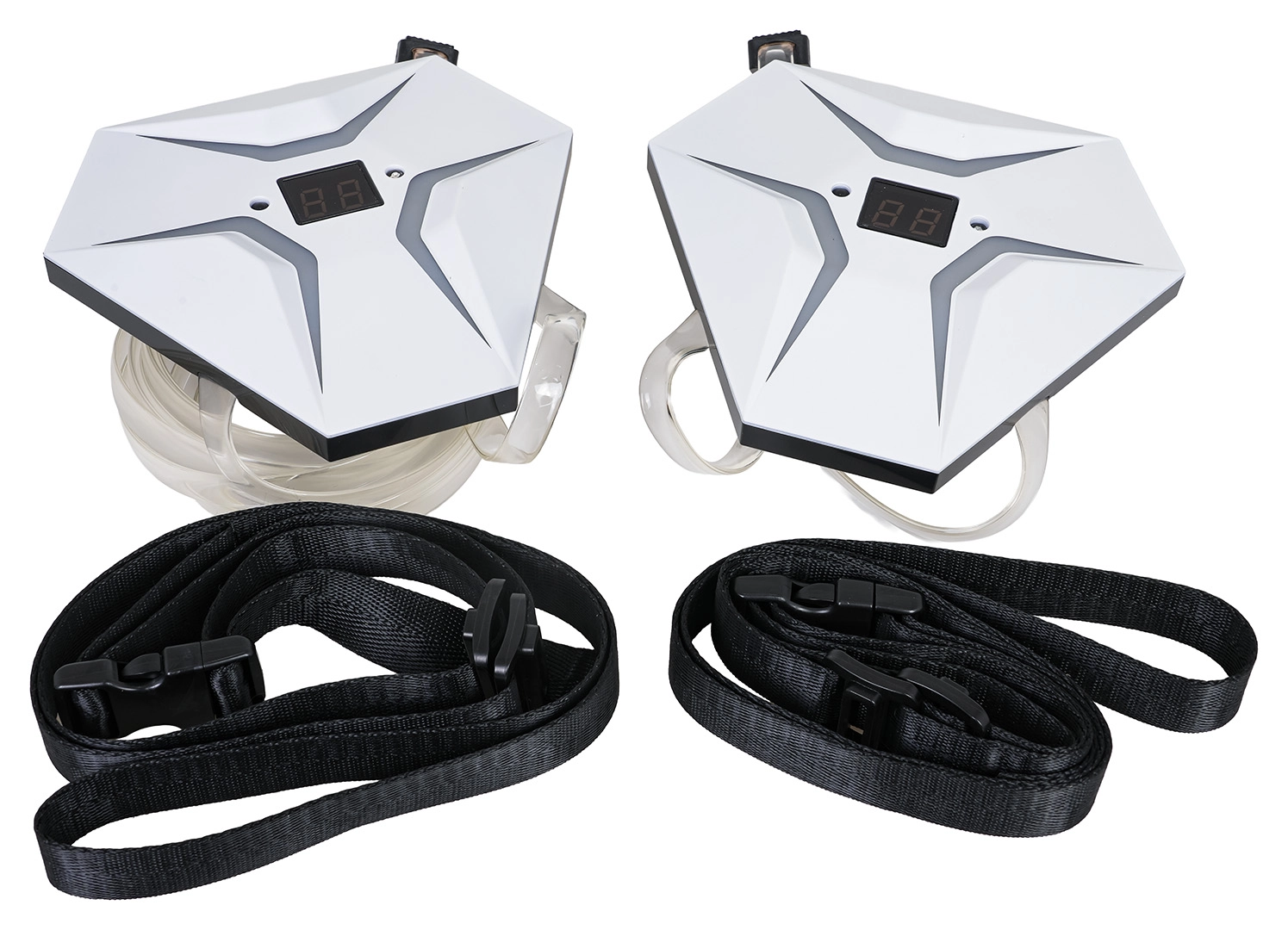 Acumulatorii integrați și cablul USB inclus cu 4 conectori permit încărcarea tuturor componentelor simultan. Pistoalele rezistă până la 6 h, vestele aproximativ 3 h.