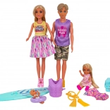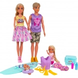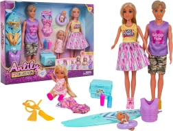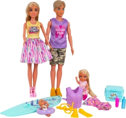 Bucură-te de aventuri de vară cu acest set de plajă pentru familie – mama, tata, fiica și bebelușul, plus multe accesorii pentru surf și înot. Setul include, printre altele, o placă de surf, vestă de salvare, labe de înot, colac și ladă frigorifică pentru băuturi. Păpușile au membre mobile și se îmbracă ușor, fiind ideale pentru jocuri de rol creative, dezvoltarea imaginației și ore întregi de distracție.