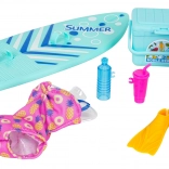 Datorită plăcii de surf, labelor, vesticii de salvare și colacului gonflabil, copiii pot crea nenumărate povești, de la surf până la înot în siguranță. Lada frigorifică pentru băuturi și paharele completează orice aventură la plajă. Păpușile au mâini, picioare și cap mobile și pot fi ușor așezate sau ridicate pentru scenete realiste.