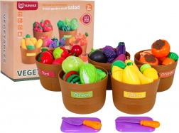 Două cuțite, două tocătoare și coșuri rezistente formează un set complet care sprijină jocul creativ, motricitatea și cunoașterea alimentelor.